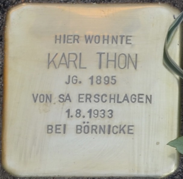 Bis heute ist jedoch unklar, ob Karl Thon im KZ angekommen ist oder bereits auf dem Weg dorthin von den SA-Leuten umgebracht wurde. Was mit ihm in jener Nacht geschah, wurde von der SA erfolgreich vertuscht, sodass sein Verbleib lange unbekannt blieb.