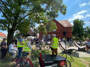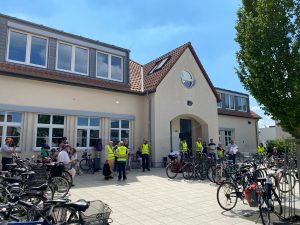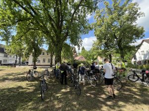 Am Samstag, 28.06.2025, folgten etwa 30 Radfahrer*innen unserer Einladung und begaben sich mit uns auf eine spannende Reise auf den Spuren der Bildung in Falkenhagen und Seegefeld. Nachfolgend wollen wir einige der Informationen nochmal zusammenfassen und Impressionen der Fahrt teilen.