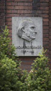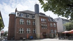 Die nach den Plänen des Berliner Architekten Peters in weniger als einem Jahr erbaute Schule war im April 1909 bezugsfertig. Sie startete als „Gemeindeschule 2“ und wurde 1950 in „Diesterwegschule“ umbenannt. Sie wurde 3geschossig errichtet – als unverputzter Klinkerbau mit Walmdach und Blendfassade in einem zu der Zeit üblichen Baustil. Unüblich war, dass mit der Schule gleichzeitig auch eine Turnhalle errichtet wurde. Beide Gebäude stehen seit 1993 unter Denkmalschutz. Heute beherbergt das schöne alte Schulgebäude den Hort der Diesterweggrundschule, die 1996 in der Adlerstraße 9 einen Neubau bezog.