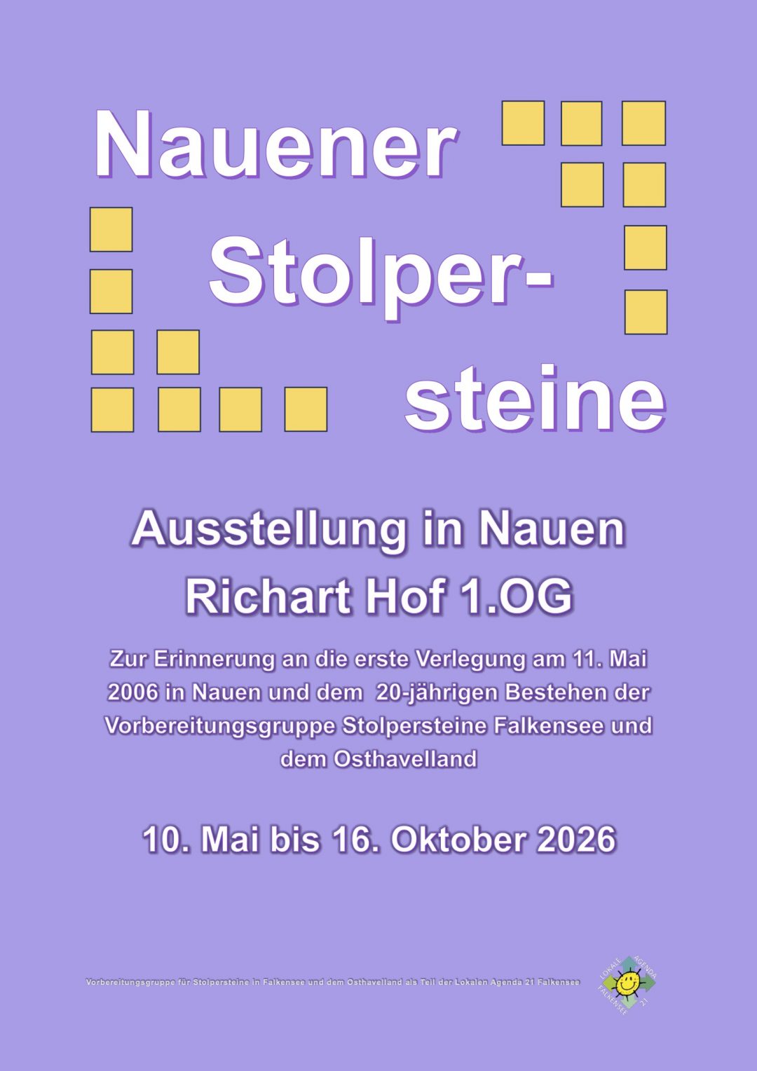Zur Erinnerung an die erste Verlegung am 11. Mai 2006 in Nauen und dem 20-jährigen Bestehen der Vorbereitungsgruppe Stolpersteine Falkensee und dem Osthavelland.